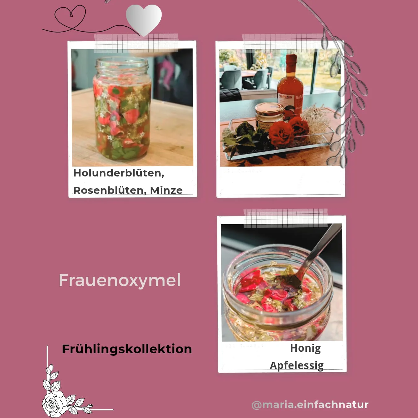 Oxymel ist ein altes Heilmittel, auch Sauerhonig genannt, eine Mischung aus heimischen Honig und Apfelessig, ich lasse die verschiedensten Heilkräuter 4-6 Wochen im Oxymel fermentieren.